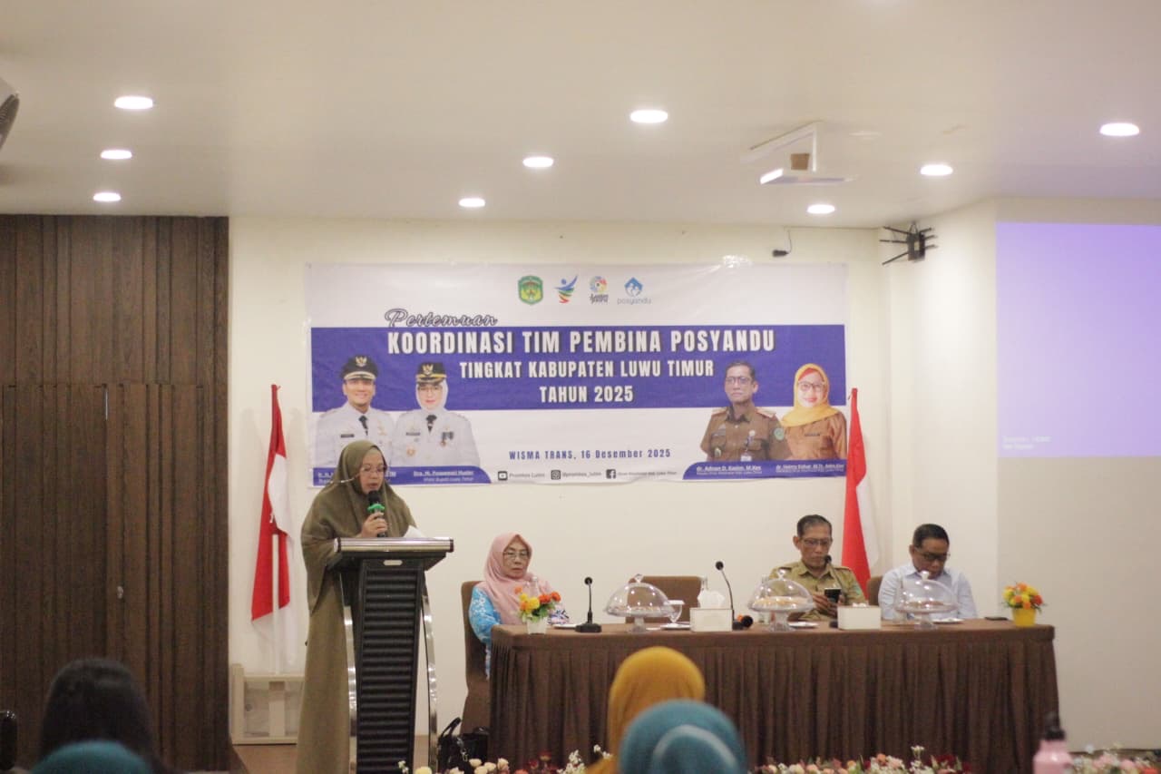 medialutim.id- Pemerintah Kabupaten Luwu Timur (Pemkab Lutim) melalui Dinas Kesehatan terus memperkuat peran Posyandu sebagai pusat pemberdayaan masyarakat melalui Pertemuan Koordinasi Tim Pembina Posyandu Tingkat Kabupaten Tahun 2025 yang digelar di Wisma Trans, Malili, Selasa (16/12/2025).